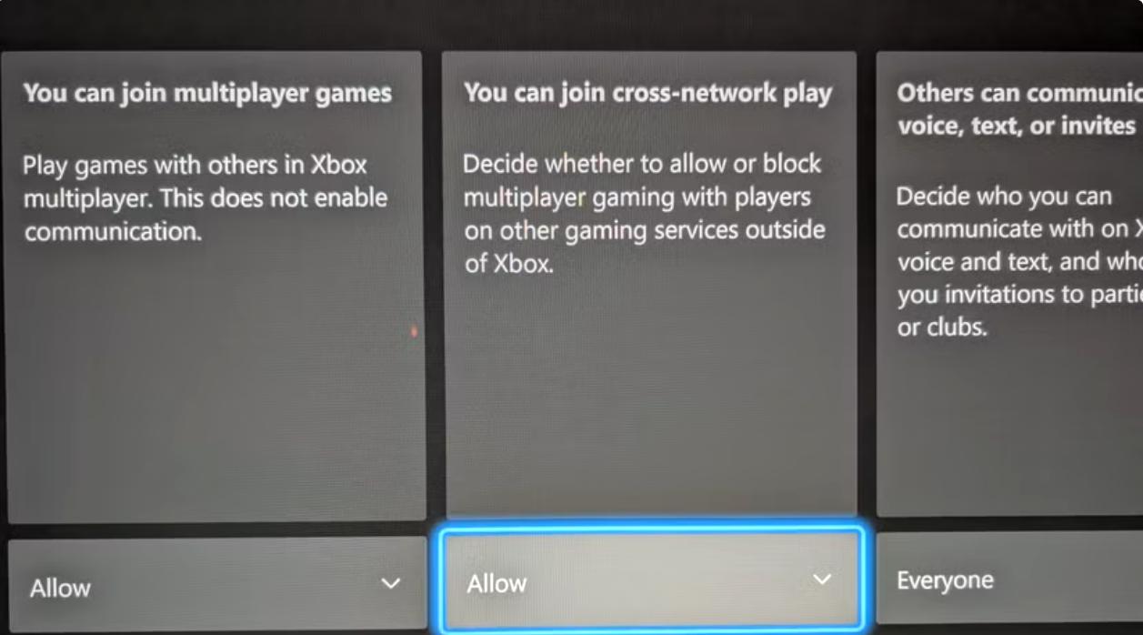 Step 2: Turn on Crossplay from the Account and Network window.