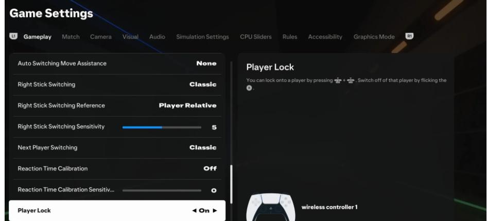 | Player Lock | ON | Allows you to manually control off-ball movement |